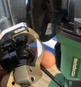 You will need to dremel the Caster Block as shown in the pic below. Be sure to relieve it farther up than stock so the arm clears. Its not a huge amount, don’t go crazy.
